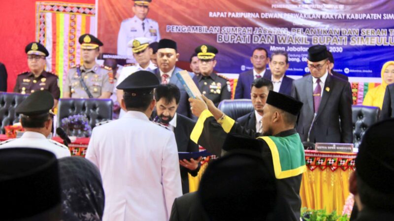 Pelantikan ini dihadiri oleh para pejabat daerah, tokoh masyarakat, serta perwakilan berbagai elemen masyarakat. Dengan resmi menjabat, Monas dan Nusar Amin kini dihadapkan pada tugas besar untuk mewujudkan visi pembangunan Simeulue selama lima tahun ke depan.(redaksi)