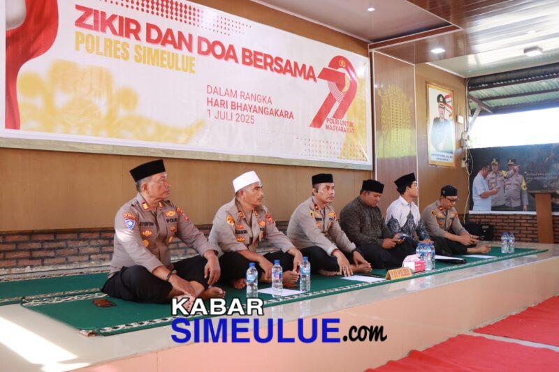 KABAR SIMEULUE – Dalam rangka menyambut Hari Bhayangkara ke-79 yang jatuh pada 1 Juli 2025, Polres Simeulue menggelar kegiatan Zikir dan Doa Bersama yang berlangsung khidmat di Aula Mapolres Simeulue, Kamis (19/6/2025).