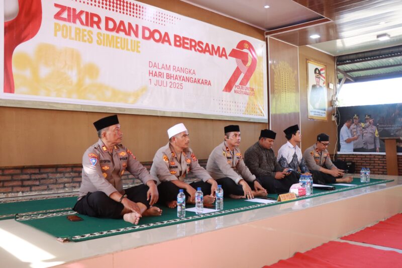 KABAR SIMEULUE – Dalam rangka menyambut Hari Bhayangkara ke-79 yang jatuh pada 1 Juli 2025, Polres Simeulue menggelar kegiatan Zikir dan Doa Bersama yang berlangsung khidmat di Aula Mapolres Simeulue, Kamis (19/6/2025).