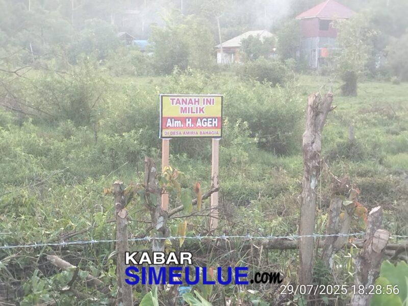 KABAR SIMEULUE –Sejumlah warga dilaporkan telah melakukan pemagaran tanah di Desa Ameria Bahagia, Kecamatan Simeulue Timur. Kali ini, Muliono melaporkan aksi pemagaran dan pemasangan pamflet secara sepihak di atas tanah miliknya seluas 2,83 hektare ke Polres Simeulue.